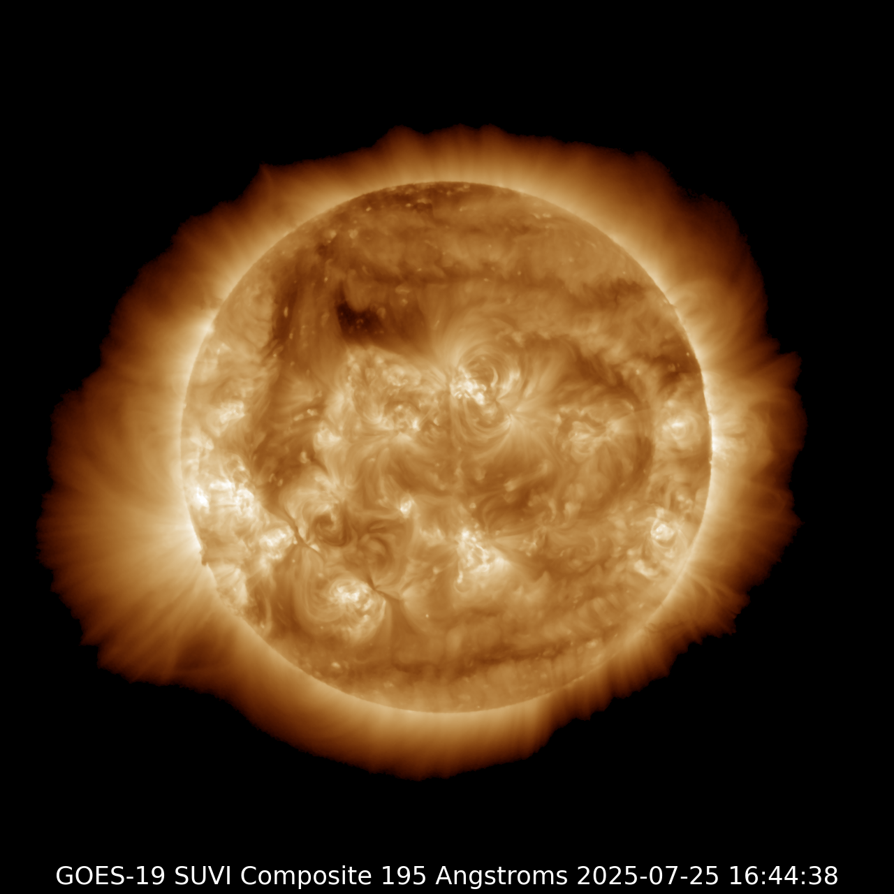 Fast solar wind from a coronal hole continues to flow past Earth, but it's gradually weakening. Solar wind speeds peaked near 789 km/s on July 17 and have since begun to ease. The resulting geomagnetic activity has quieted down, with only a slight chance of isolated active periods remaining, especially today (July 18).